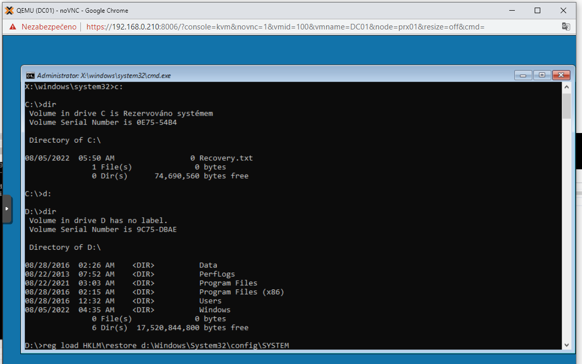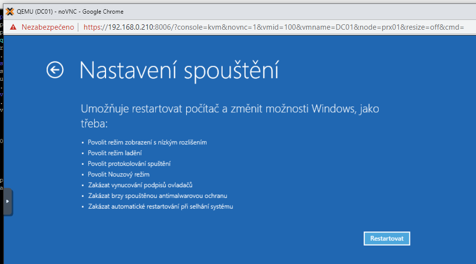 - na TMP serveru jsem založil nový VM se stejnými parametry jako původní server