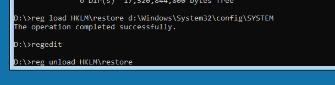 reg load HKLM\restore c:\Windows\System32\config\SYSTEM