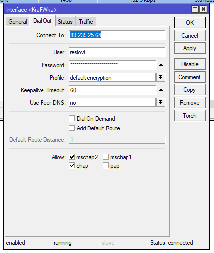 Na fw KRAFWKA je potřeba nastavit přístupové údaje v souboru /etc/ppp/chap-secrets a změnit konfiguraci na firewallu v souborech interfaces a masq.