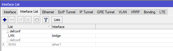 Defaultní konfigurace dle návodu na Mikrotiku výše.