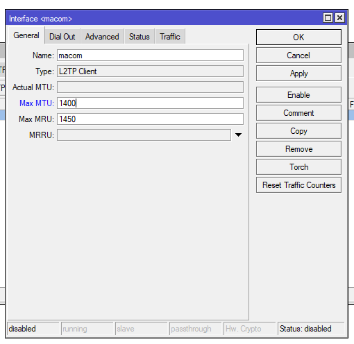 Ale bylo by možné použít i běžně používanou konfiguraci pro klienta - dynamicky vytvořený L2TP interface.