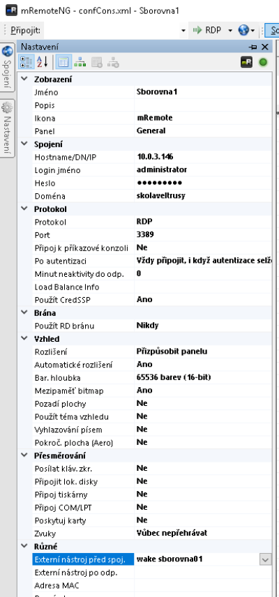Pro integraci s programem mRemoteNG je použité rozšíření Externí nástroje.