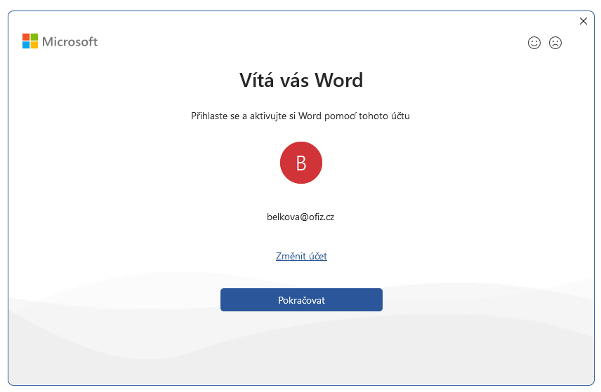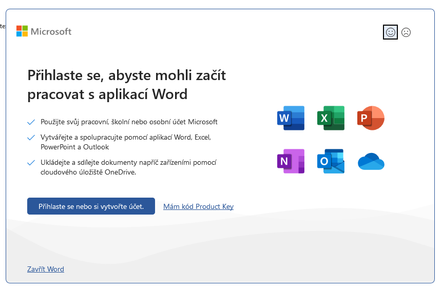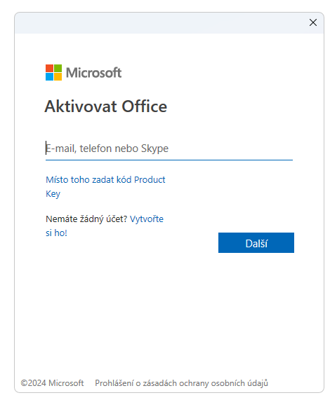 Od verze MS Office 2013 se provádí instalace a aktivace na základě účtu u Microsoftu.