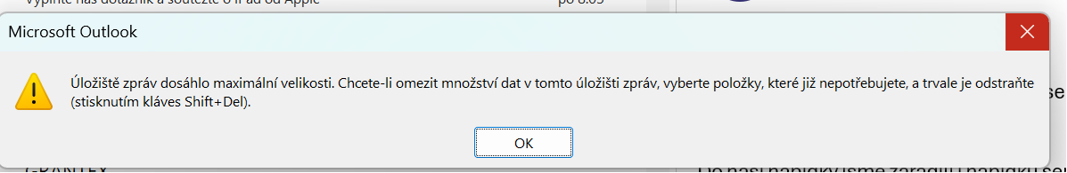 Outlook - uložiště dosáhlo maximální velikosti