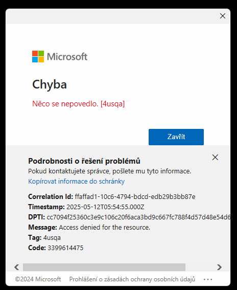 Correlation Id: c7ba2ee4-974f-4d89-9533-a69440aae28e Timestamp: 2025-05-12T05:58:15.000Z DPTI: cc7094f25360c3e9c106c20f6aca3bd9c667fc788f4d57d48e54d601b339b66b Message: Access denied for the resource. Tag: 4usqa Code: 3399614475