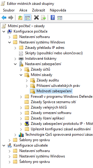- Konfigurace počítače - Šablony pro správu - Systém - Delegování přihlašovacích údajů - Povolit delegování uložených přihlašovacích údajů při ověření serveru pouze protokolem NTLM