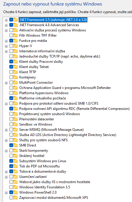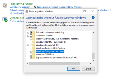 Kromě funkce WSL je potřeba zapnout funkci Platforma virtuálního počítače