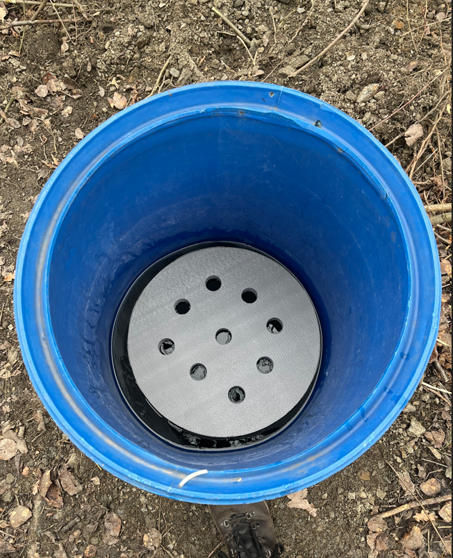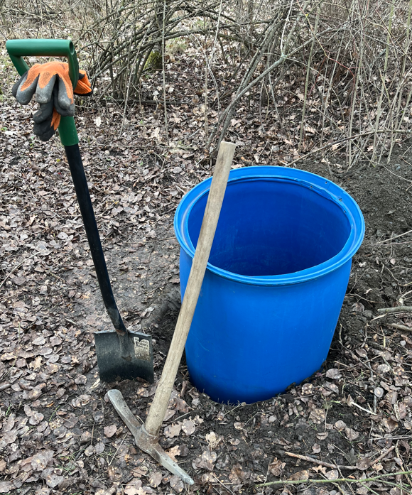 Instalace sudu s vodou - napáječka. Na polystyrenový plovák jsem nakapal med jako lákadlo pro včely, tak uvidíme.