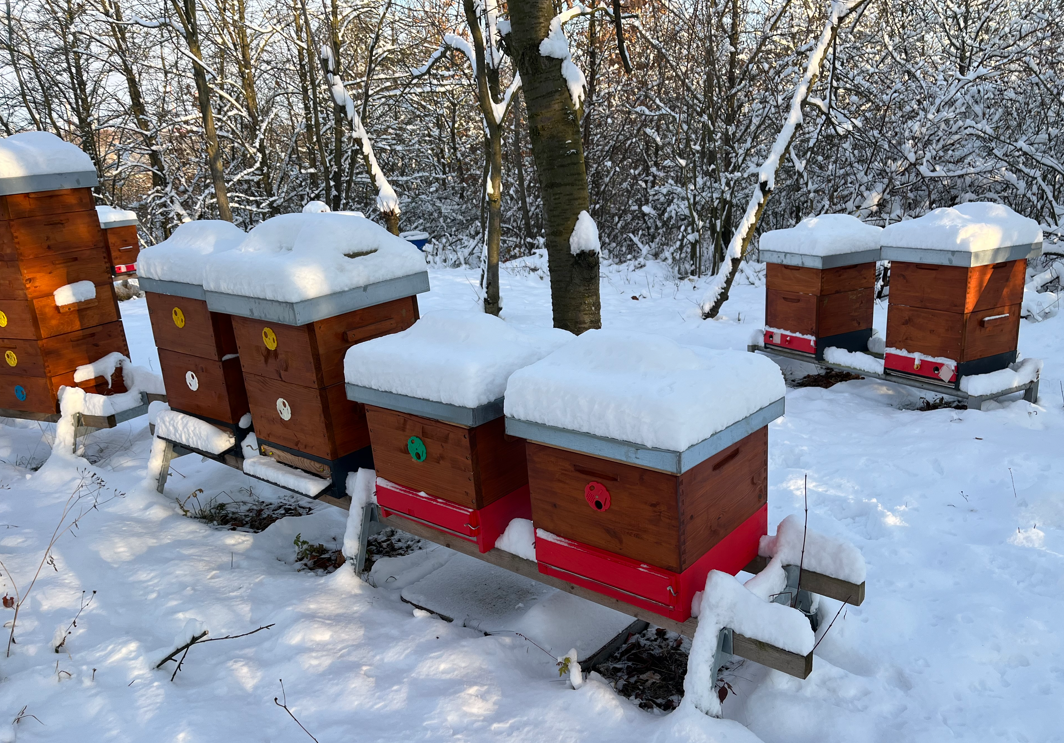 - 30.01.2025 - sběr měli, orientační kontrola. Jedno včelstvo nepřežilo. V úle zůstalo jen malé množství včel. Zásob bylo dostatek, ale včely byly zalezlé uvnitř buněk.