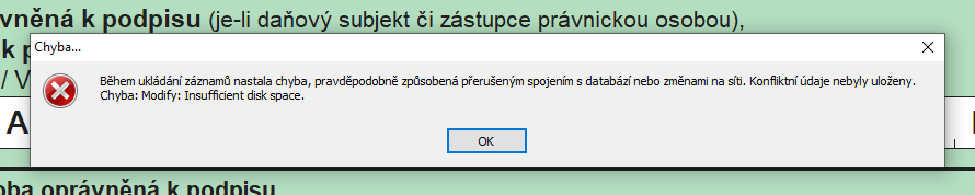 Tento problém postihl i Taxedit. V taxeditu nebylo možné připojit databáze.