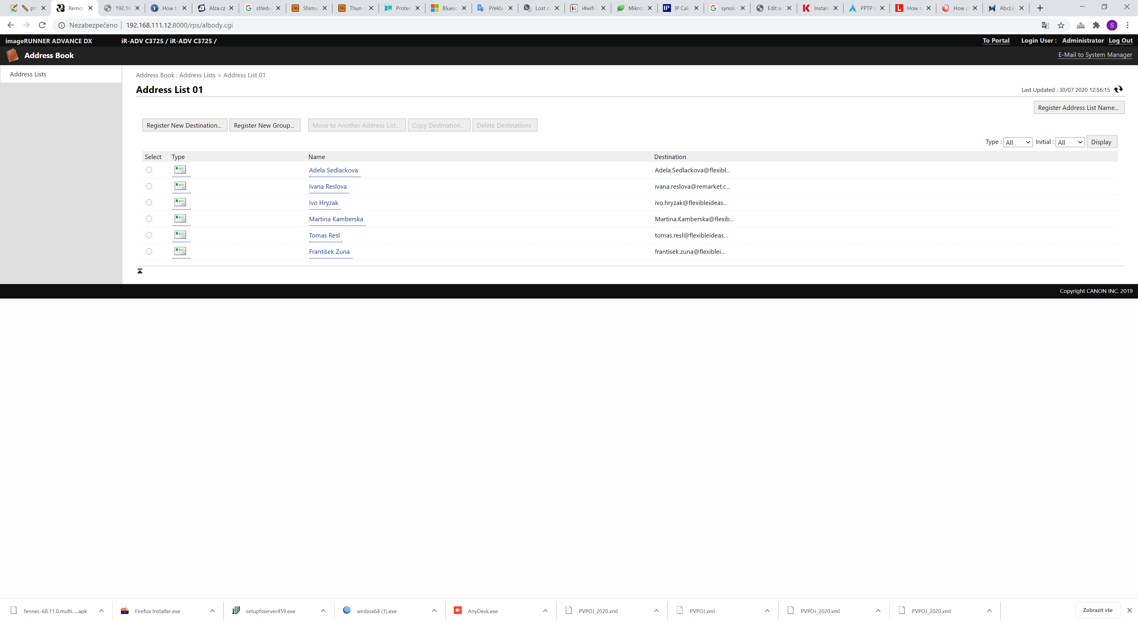 Pozor: platný adresář pro sken - Address Book : Address Lists > Address List 01