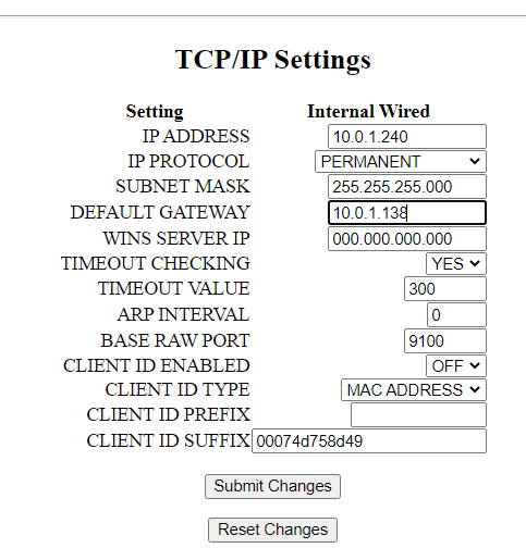 Tiskárna občas zapomene nastavení, na obr. dole by měla být funkční konfigurace