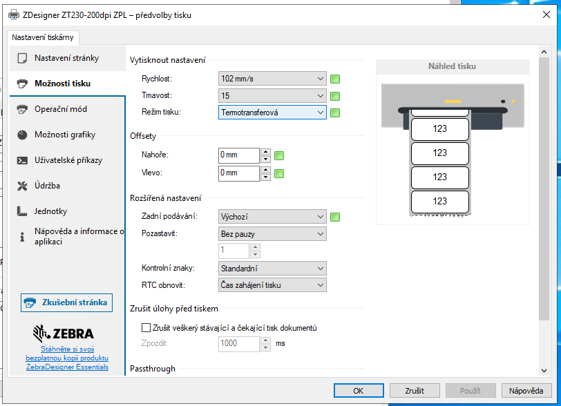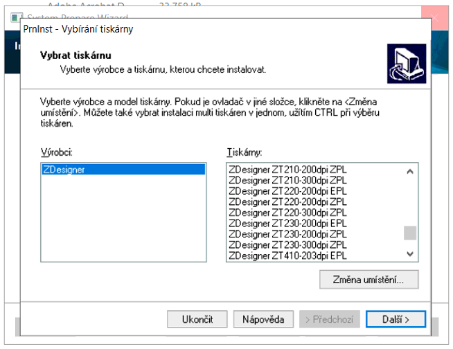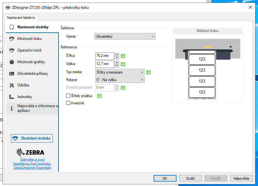 Instalace a konfigurace tiskárny ZEBRA