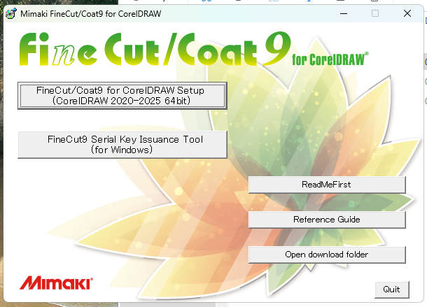 Vyberte FineCut/Coat9 pro CorelDRAW. V průběhu instalace se nainstaluje vlastní sw, dále modul do CorelDraw a ovladač pro Mimaki