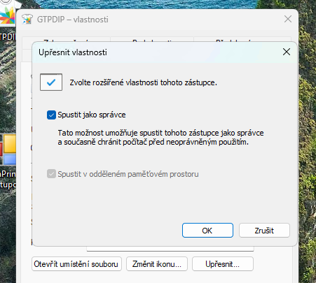 - důležité - nastavit spouštění sw FilmPrint a GLBPrint jako Správce
