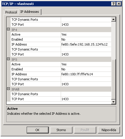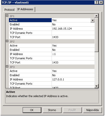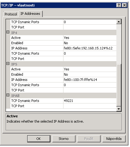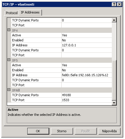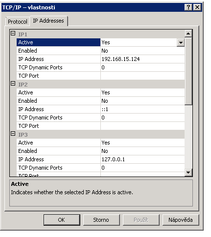 TCP porty pro jednotlivé instance SQL: