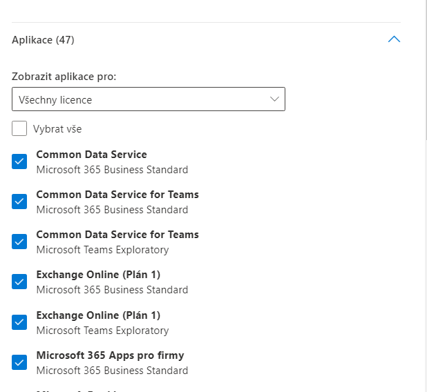 Problém byl v povolení aplikací v rámci menu Licence a aplikace