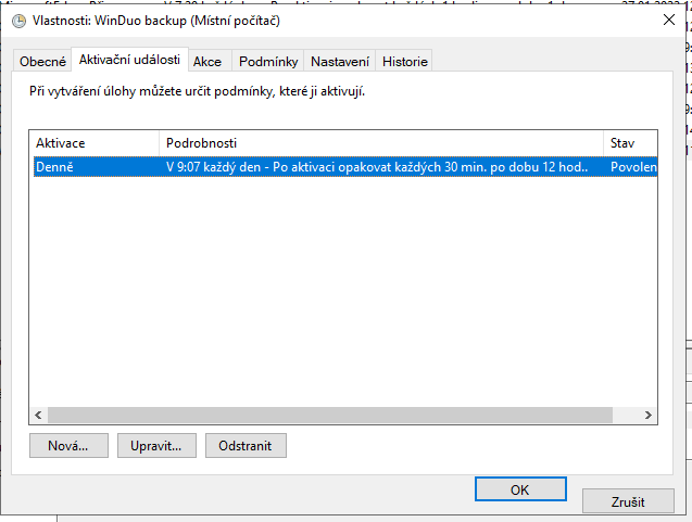 Virtuální servery Server a DC01 se zálohují každý den v 2:10 s výjimkou víkendu. Záloha jednoho serveru cca 200GB trvá přibližně 1,5hod.