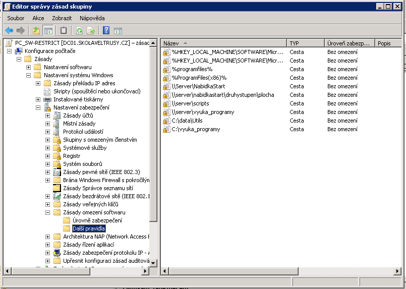 Konfigurace počítače - Zásady - Nastavení systému Windows - Nastavení zabezpečení - Zásady omezení softwaru - Další pravidla